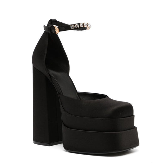 Nyx's Noir- Black Satin Platforms