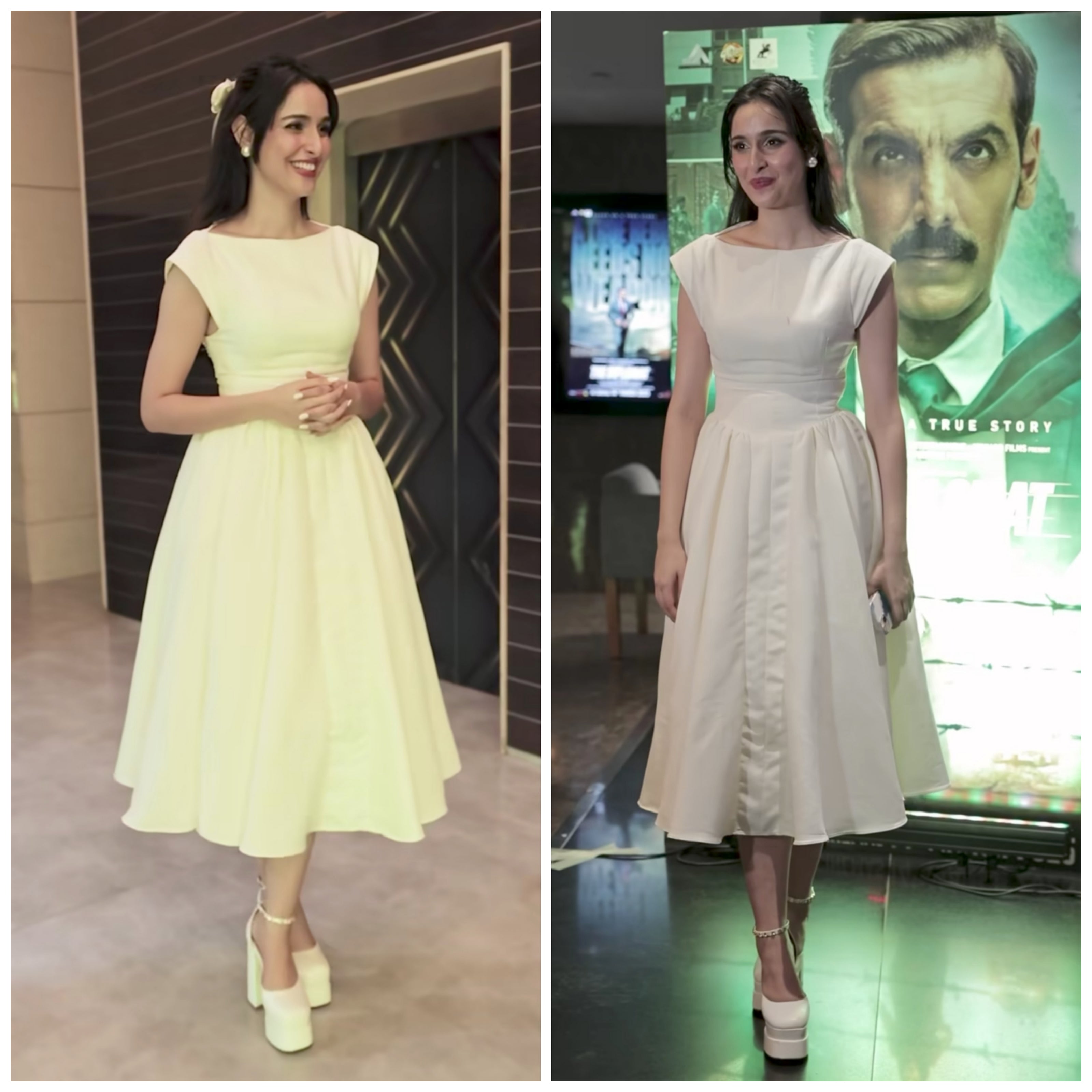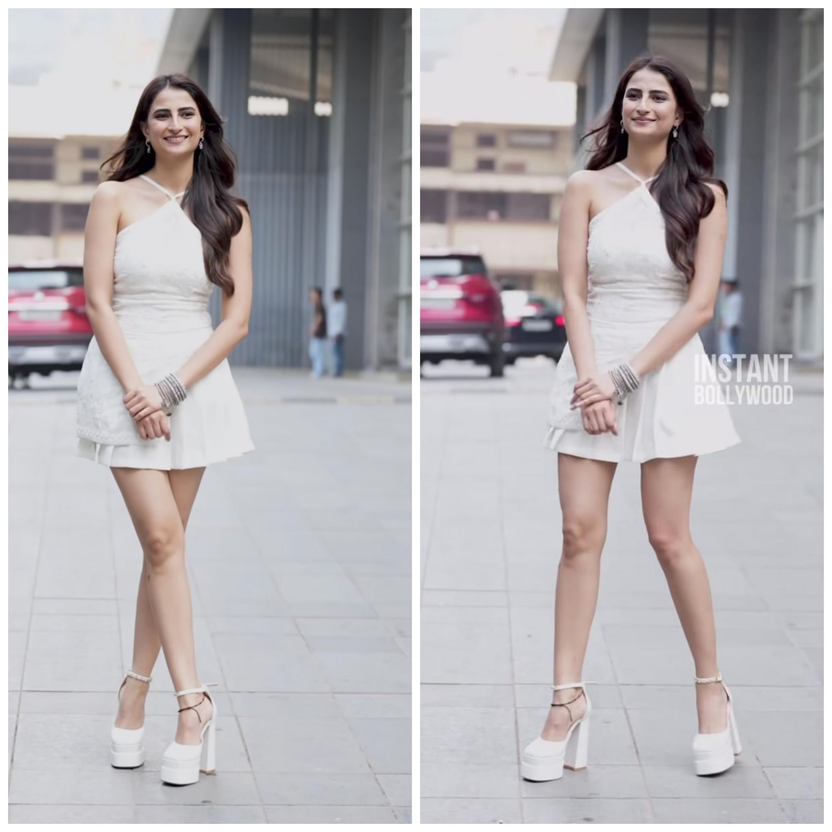 Palak in our Hera's Grace White Platforms heels at the promotion of her film Bhootni