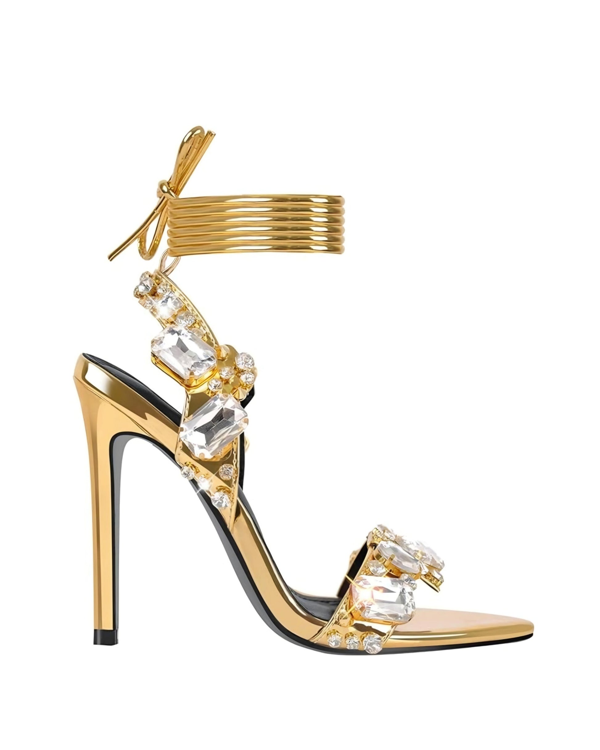 Command attention with our golden, crystal-adorned 3-inch high heels, the crown jewel of our seven-showstopper collection, inspired by the formidable goddess Até. These luxury high heels, blending opulent design with exceptional craftsmanship, ensure you dominate every room and turn heads at any event.